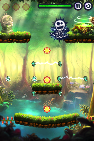 I controlli non sono molto intuitivi, ma sicuramente sono originali ed una volta che ci si abitua comincia il vero divertimento. In pratica toccando Alex con il dito lui comincerà a soffiare a terra ed il suo potente soffio ci permetterà di farlo volare, trascinandolo da una parte all’altra del livello. La barra sulla parte superiore dello schermo indica il suo fiato una volta consumata tutta Alex precipiterà, comunque sia la barra impiegherà un attimo a ricaricarsi così avremo anche la possibilità di riprendere Alex “al volo” per salvarlo prima che cada a terra.