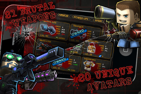 Pur non essendo un 3D spinto come lo era Call of Mini: Zombies, la qualità c’è e si vede. Sia come grafica che come sonoro siamo su alti livelli, in particolare ho apprezzato le animazioni del sangue che schizza per aria e la colonna sonora heavy metal tipica della serie. Devo però anche dire che non è quello che mi aspettavo, mi ero abituato ad un ottimo 3D dopo il primo Call of Mini e speravo che Double Shot ripercorresse almeno la strada del predecessore, mentre invece in questo gioco abbiamo una visuale dall’alto alla Minigore: un passo, anzi, tre passi indietro.