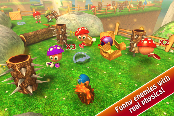 I programmatori di Crazy Hedgy hanno deciso di affidarsi totalmente all’accelerometro e forse, ma non sono sicuro, al giroscopio, per gestire il movimento del porcospino. Decisione saggia anche se ci vorrà un po’ di tempo per abituarsi e imparare a dosare la forza nelle “sterzate”. Altro punto a favore è l’utilizzo di varie gestures per eseguire vari tipi di azione. Anche in questo caso un minimo di training è necessario, ma verrà da sé con i primi facilissimi livelli.