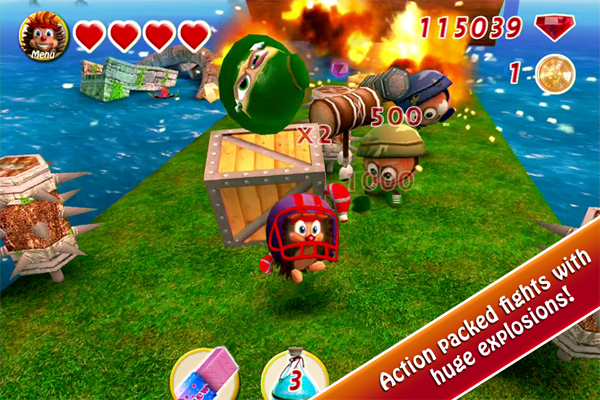 Il gioco è effettivamente stimolante e divertente, ci sono tantissimi bonus da prendere ed escono nuovi nemici con l’andare avanti dei (tanti) livelli. Dovremo saltare, correre, rotolare, spintonare, picchiare ed evitare di cadere negli abissi.