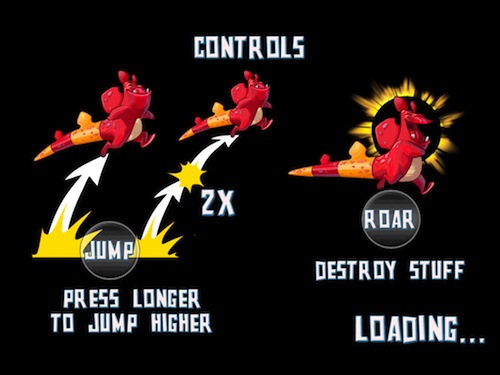 Il nostro mostro correrà ininterrottamente, incurante di quello che gli si trova davanti. Per controllarlo avremo due soli pulsanti, uno per farlo saltare evitando di precipitare, l’altro per ruggire e distruggere ostacoli particolarmente pericolosi. In alto potremo visualizzare il nostro attuale punteggio e, nell’angolo superiore sinistro, l’obbiettivo secondario. La salute di Zilla, invece è rappresentata dalla sua coda, suddivisa in tre segmenti che equivalgono ad altrettante possibilità di essere colpiti prima di concludere la partita.