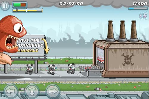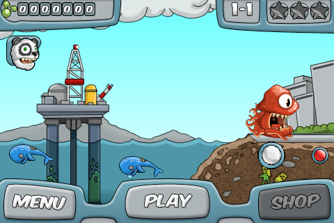 Destructopus è fondamentalmente un picchiaduro a scorrimento orizzontale che ricorda molto da vicino Rampage, il grande classico degli anni 80 stranamente non ancora convertito per iOS. Protagonista del gioco è un mostro marino che deve salvare il pianeta dai cattivoni che vogliono inquinare il mare.