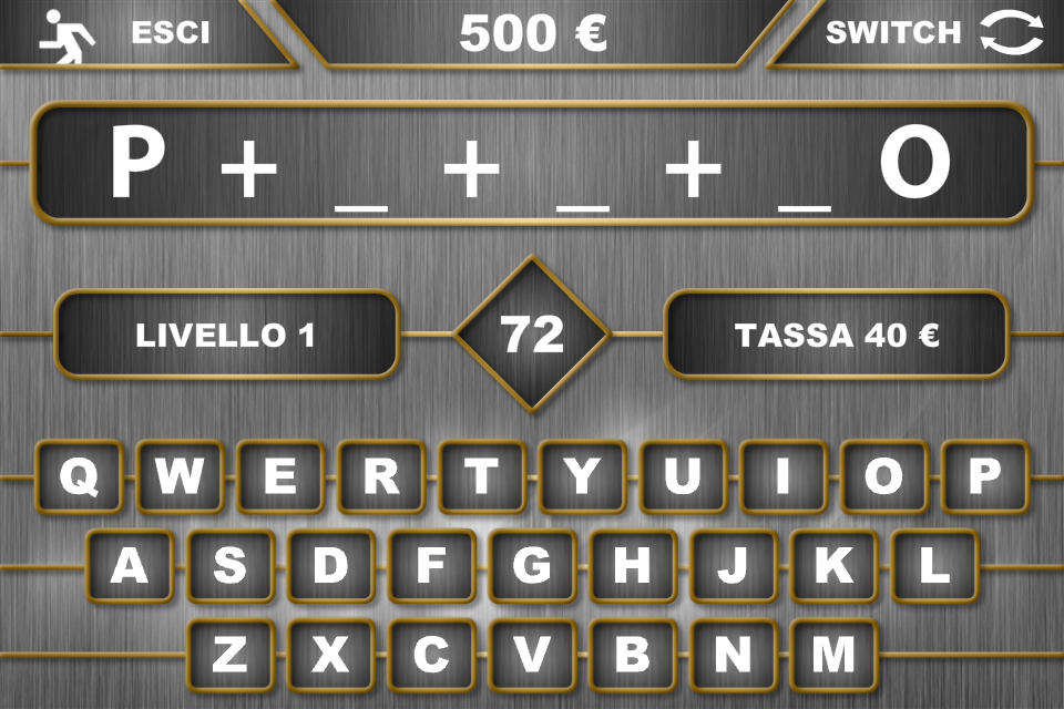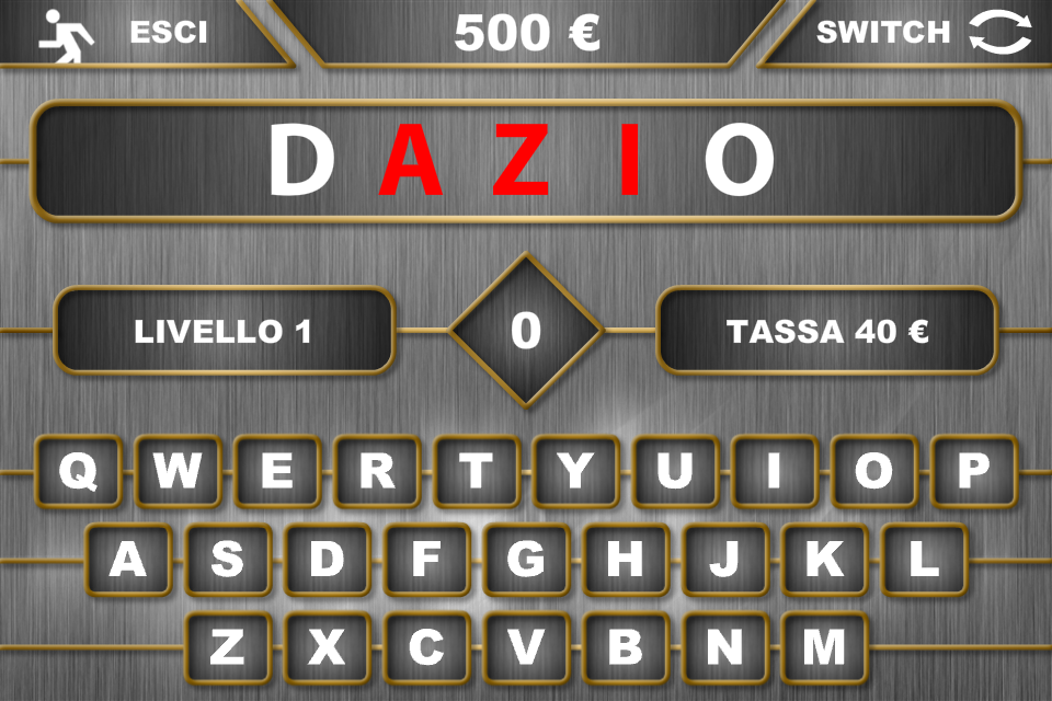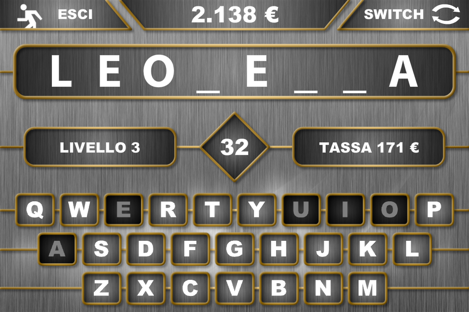 Il nostro montepremi potrà salire o scendere a seconda della lettera selezionata; potremo inoltre, una volta sola durante il gioco, ricorrere ad uno “switch” e cambiare la parola in codice con un’altra.
