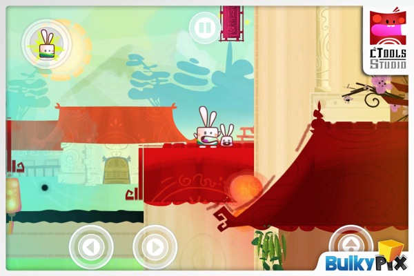 Colpetto per saltare, premere più a lungo per saltare più in alto, nulla di nuovo, ma una caratteristica del coniglietto maestro di Kung Fu protagonista è il potersi arrampicare sui muri, ed è da lì che nasce la maggior parte del divertimento: potremo scivolare lungo le pareti e risalirle fino in cima, saltando, ma bisogna stare molto attenti a prendere i tempi e le distanze giuste, e fare anche i conti con la gravità. Un meccanismo di gioco davvero riuscito, i pulsanti poi sono molto comodi e si spostano automaticamente a seconda di dove premiamo, quindi è davvero difficile mancarli.