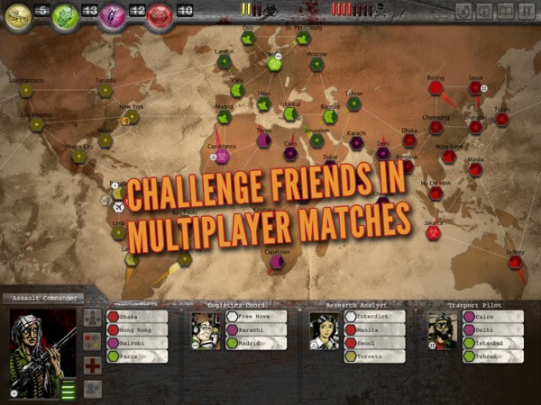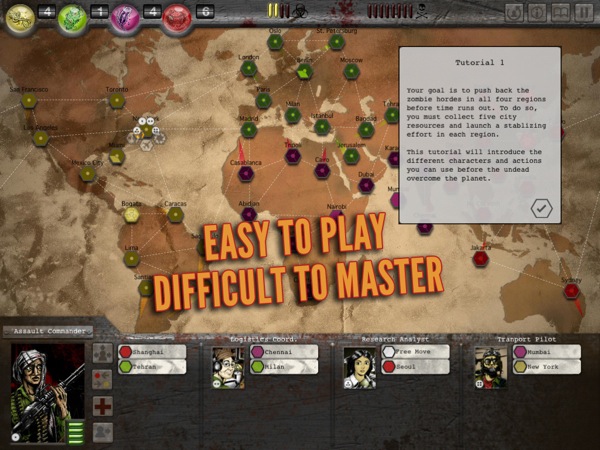 Si tratta di uno strategico simile a Risiko, ma nel quale dovremo respingere l’avanzata dei non morti e salvare il pianeta dalla contaminazione. Il sistema di gioco è un po’ cervellotico, c’è un manuale (soltanto in inglese) incluso nell’app, che comunque non è molto chiaro. La longevità è alta e la giocabilità è buona, ma ci vuole un bel po’ di tempo e pazienza per entrare nel meccanismo.