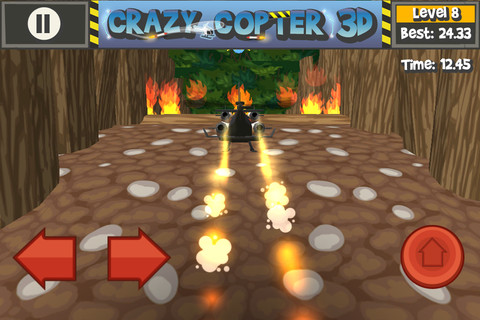 Come dicevo prima, il controllo dell’elicottero è un po’ limitato, sarebbe stato più gradevole comandarlo tramite accelerometro in tutte le direzioni o magari tramite giroscopio. Comunque, anche così rende molto bene e riesce ad essere divertente: due frecce sulla sinistra per la direzione e un tasto sulla destra per prendere quota ed avanzare.