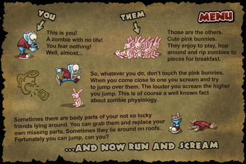 Ci troviamo in un mondo post apocalittico, dove regna il silenzio più totale e non esistono più vivi, ma solo non morti e tremendi coniglietti rosa. Sembra la fine, non c’è scampo, i coniglietti ci stanno decimando. Un urlo rompe il silenzio: ecco come saltare.