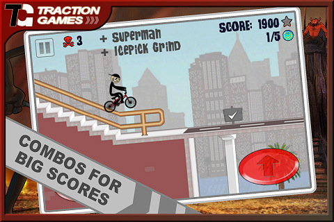 Si tratta di un simpaticissimo platform game, sequel di Stickman Skater, nel quale dovremo manovrare un omino a bordo di una mountain bike, facendogli eseguire spettacolari capriole lungo sentieri pieni di ostacoli e vuoti improvvisi.