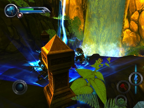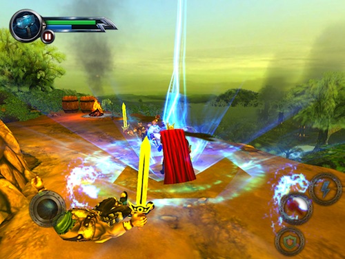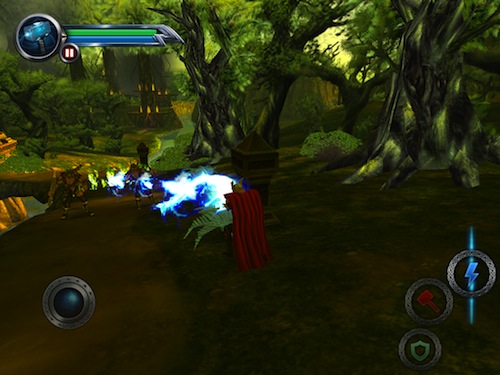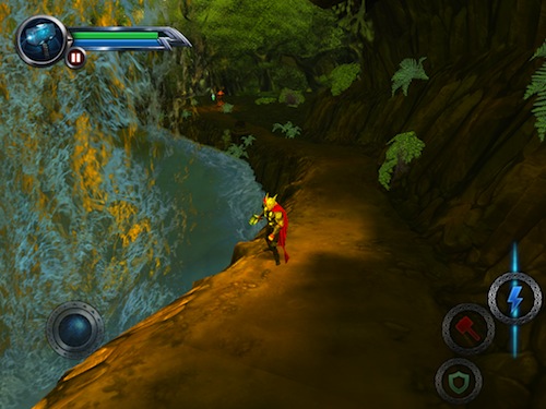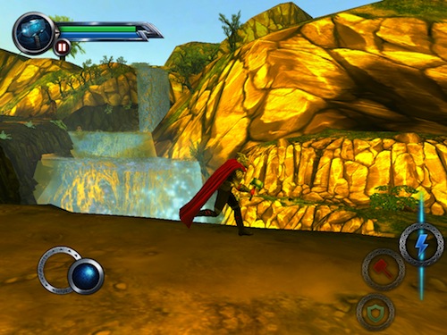 Thor viene controllato attraverso il classico pad virtuale posto in basso a sinistra, sulla destra, invece abbiamo 3 pulsanti, due per gli attacchi, ravvicinati e a distanza e un terzo, rappresentato da uno scudo che ci permetterà di schivare i colpi nemici rotolando a terra. Manca quindi la possibilità di saltare che sarebbe stata in effetti abbastanza inutile, vista la linearità dei percorsi. Combinando nel modo giusto i vari tasti si possono produrre alcune combo, con le quali scatenare tutto il potere del martello Mjolnir e la forza del tuono.
